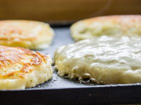 Repeat the process with the remaining batter, adding more butter or oil to the skilled when needed. Serve immediately.
