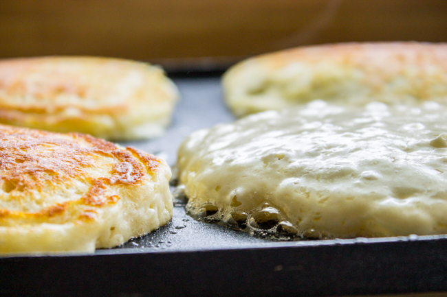 When bubbles on top start to pop, flip the pancakes. They should be a nice golden brown and crispy on the edges!